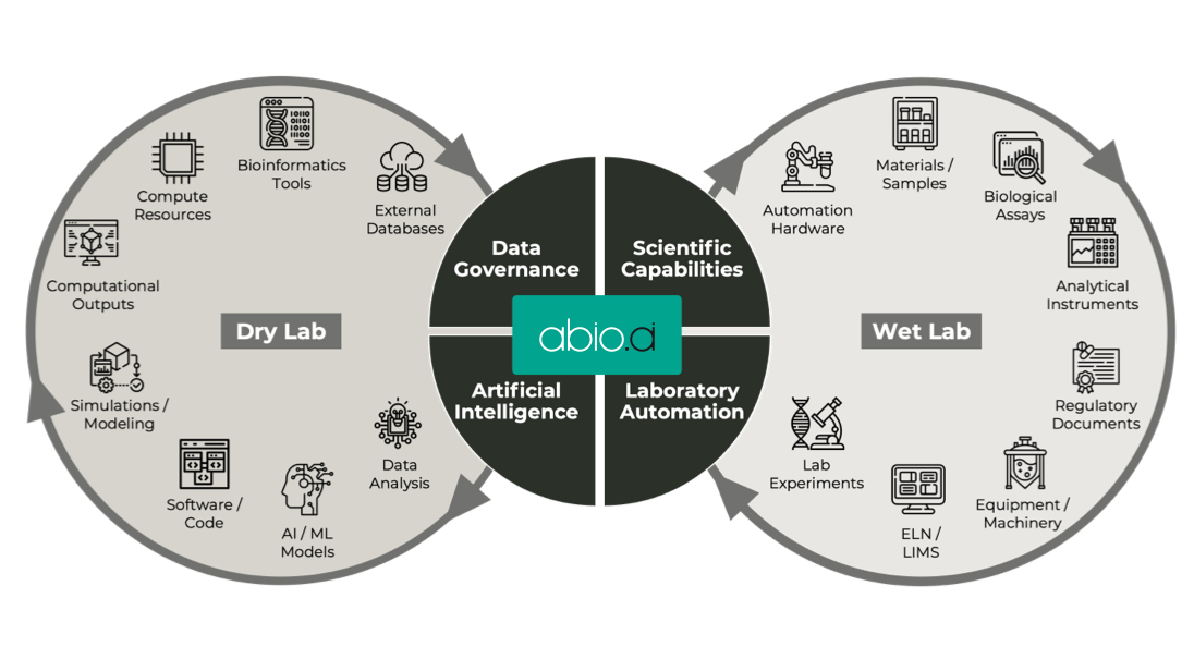 To master this challenge, Abio provides Al-first, automation-native software engineered to intelligently manage your entire R&D lifecycle. Abio integrates data from both wet labs and dry labs, breaking down silos and creating a seamless iterative feedback loop. It provides a modern, extensible environment to capture, govern, analyze, and operationalize your scientific data across teams.